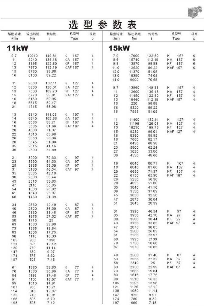 选型参数表11kW(续),15kW,