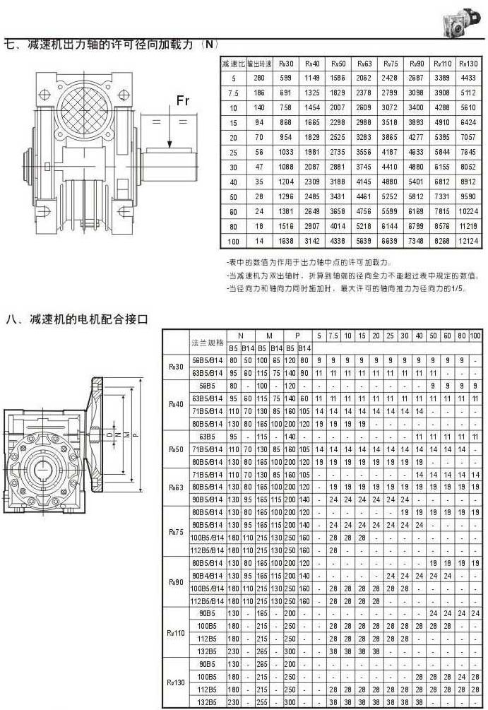 减速机出力轴的许可径向加载力(N)减速机的电机配合接口