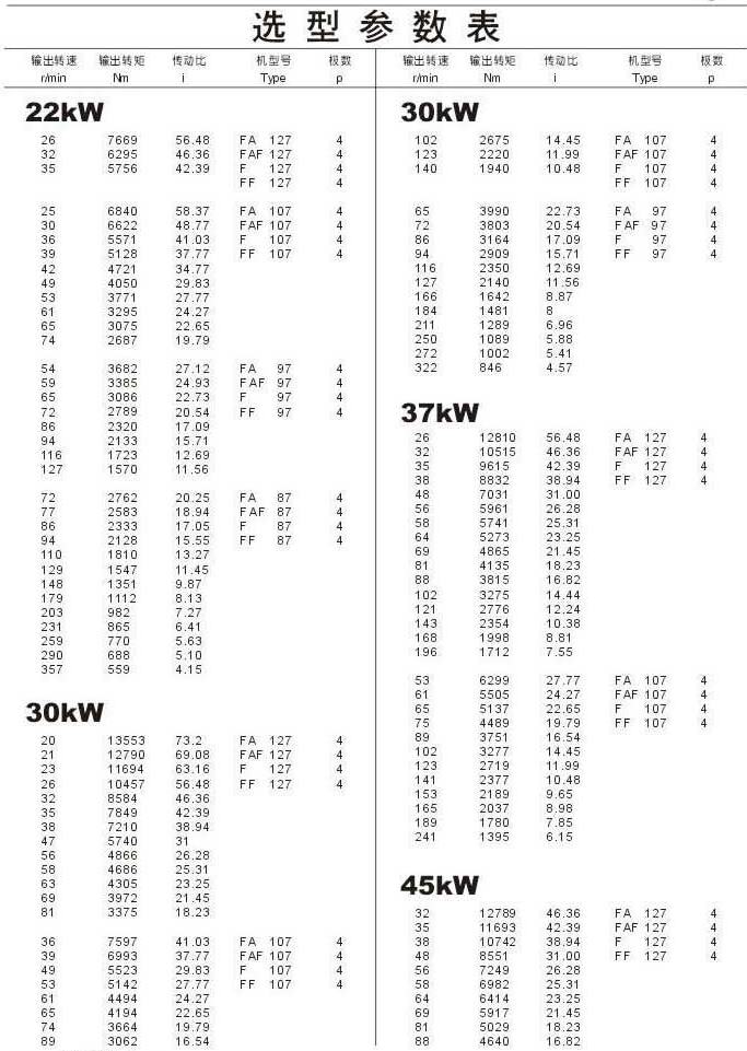 选型参数表22kW (续),30kW ,37kW ,45kW