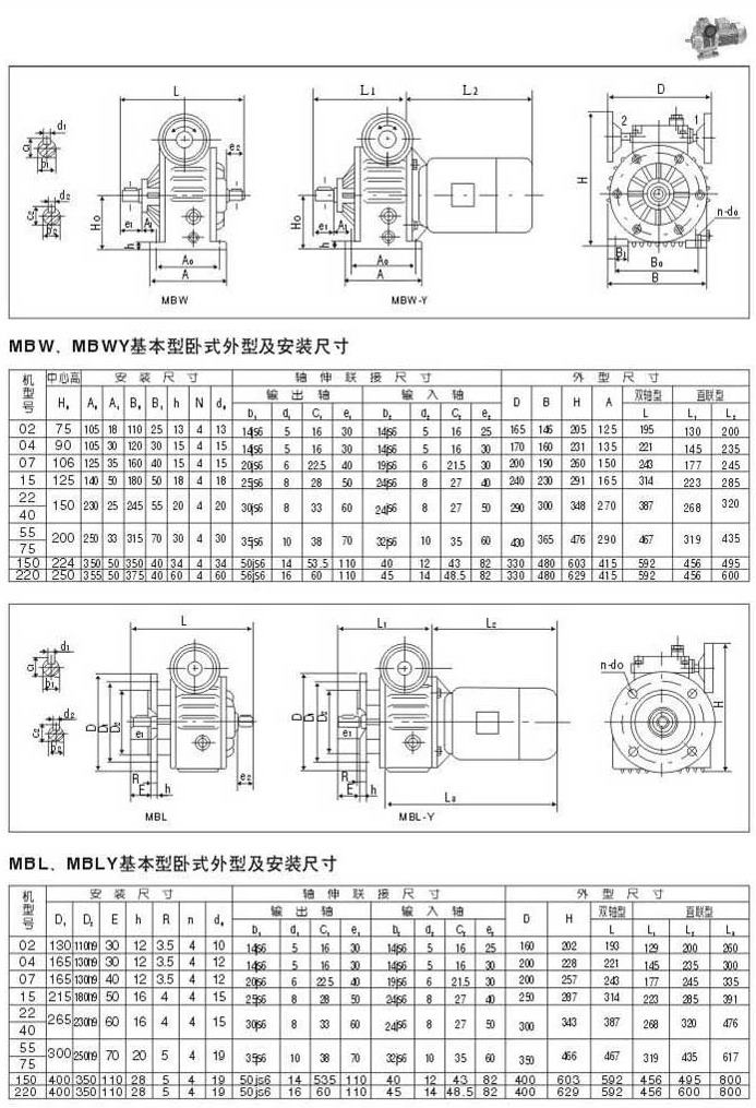 MBW.MBWY基本型卧式外型及安装尺寸MBL.,MBLY基本型卧式外型及安装尺寸