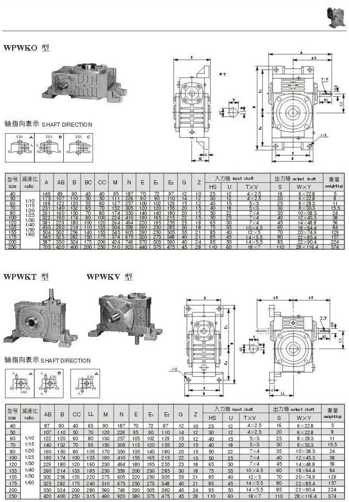 WPWKO,WPWKT,WPWKV型型号参数图表
