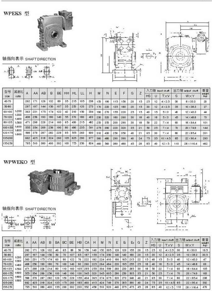 WPEKS,WPWEKO型型号参数图表
