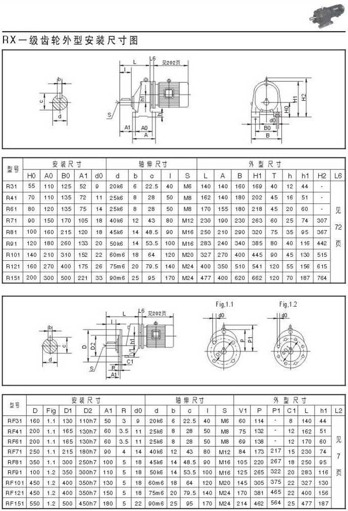 RX一级齿轮外型安装尺寸图表