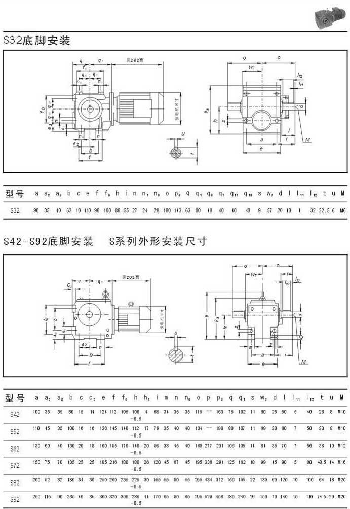 S32底脚安装尺寸S42-S92底脚安装尺寸 , S系列外型安装尺寸